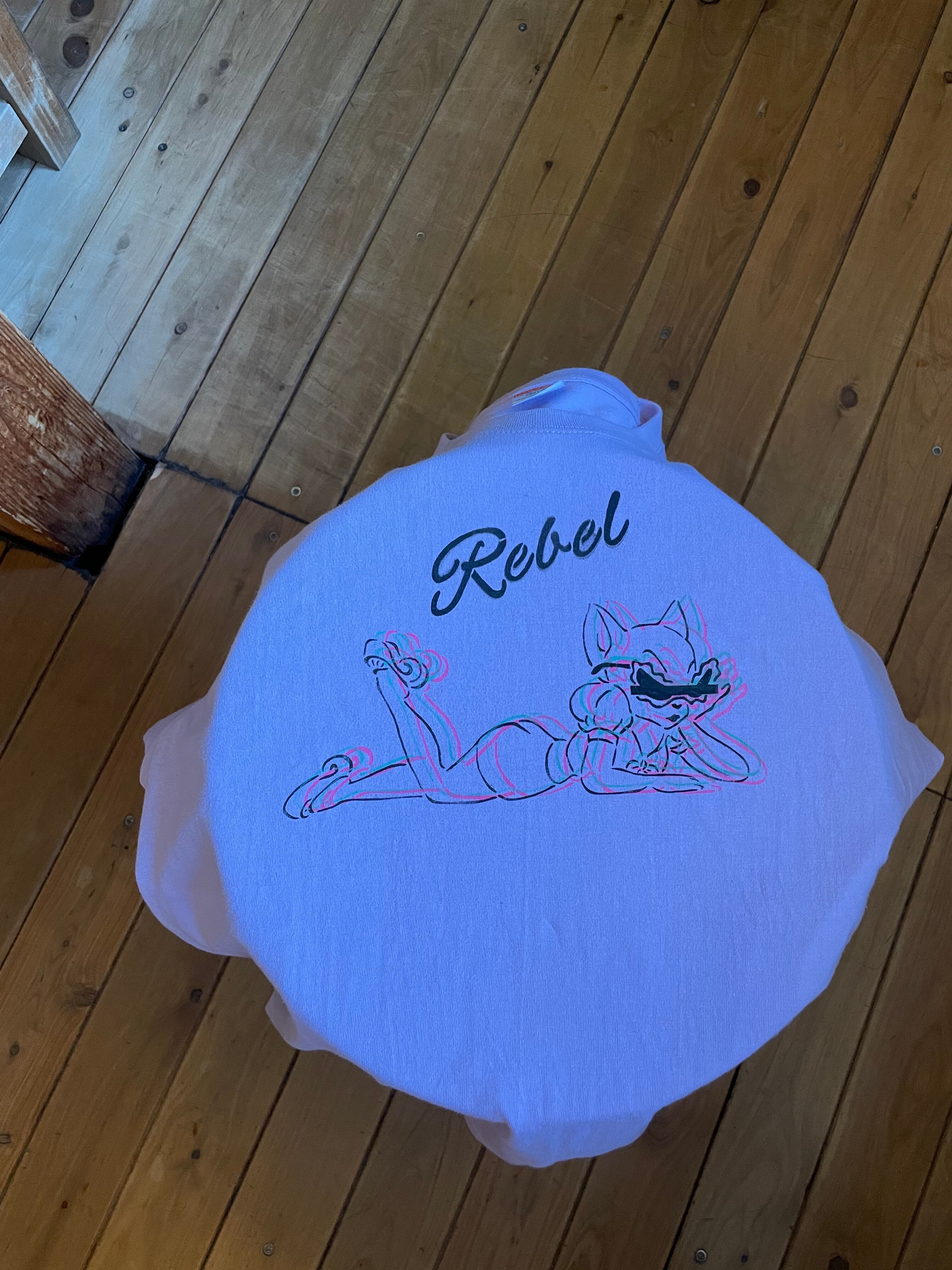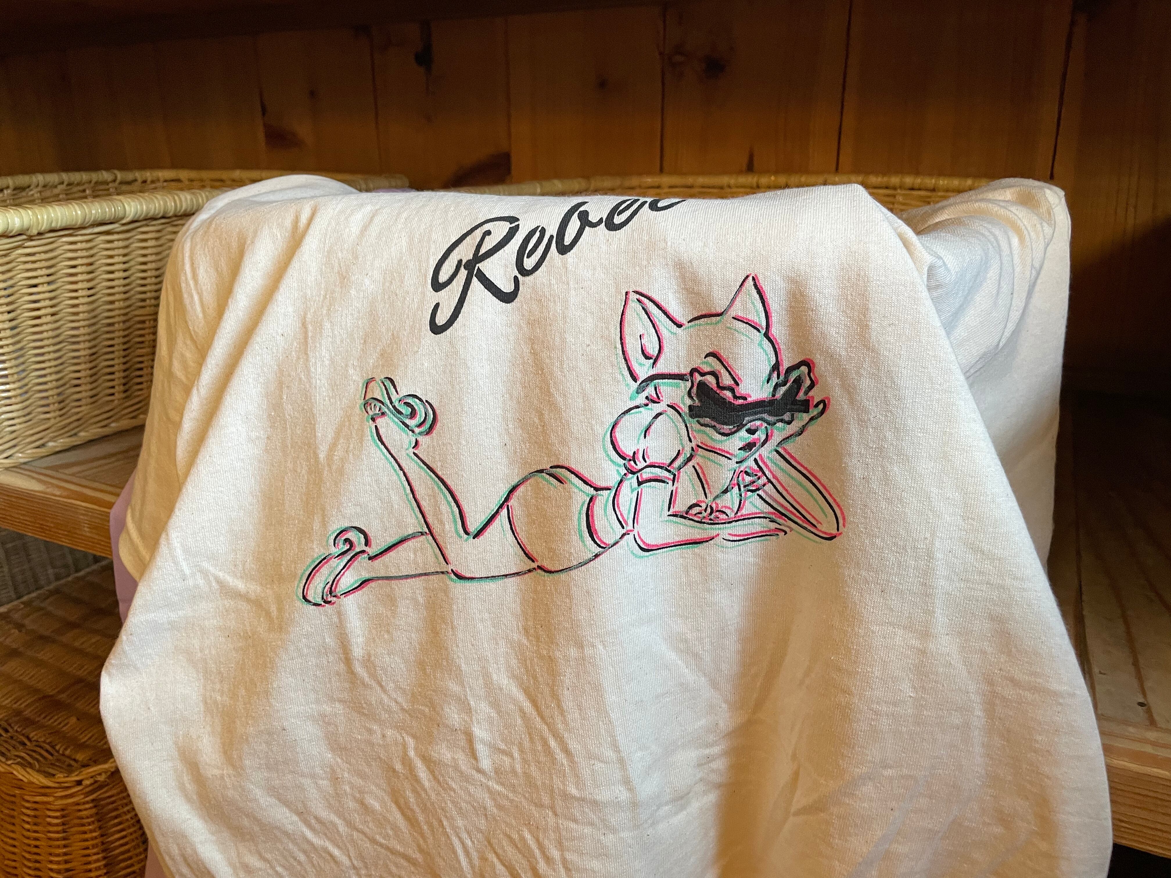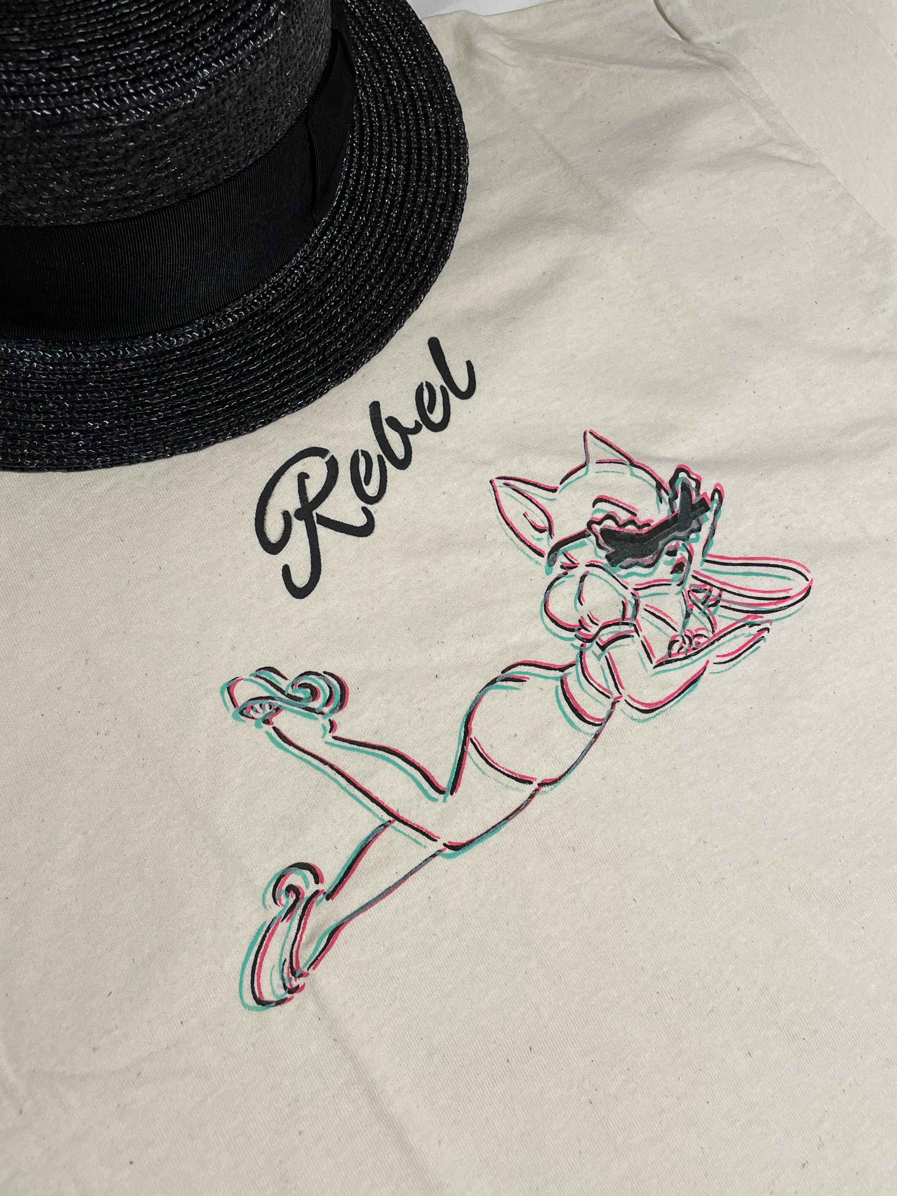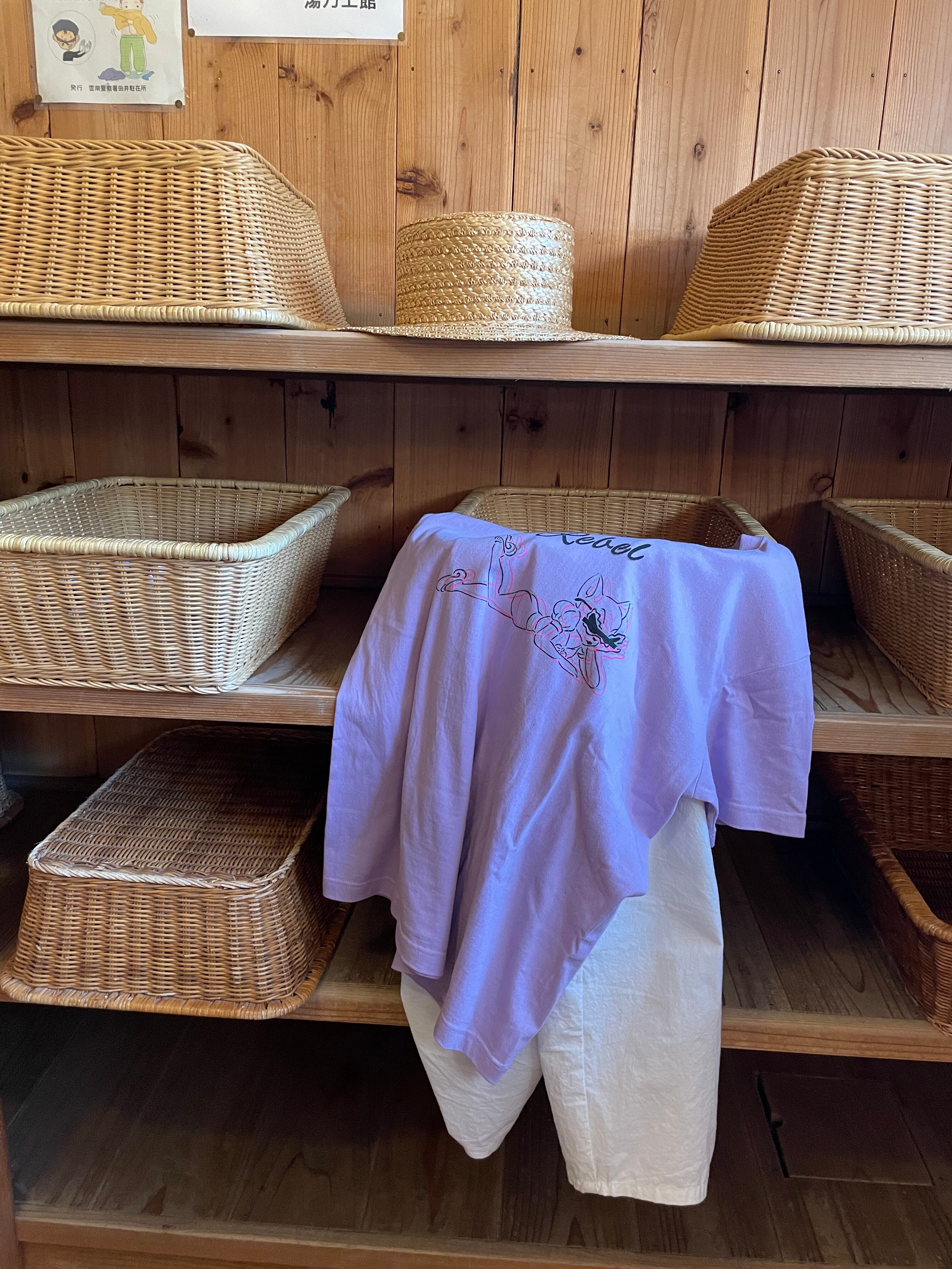 にゃんこTシャツ 半袖です。 アスカムラサキとオートミールの2カラー